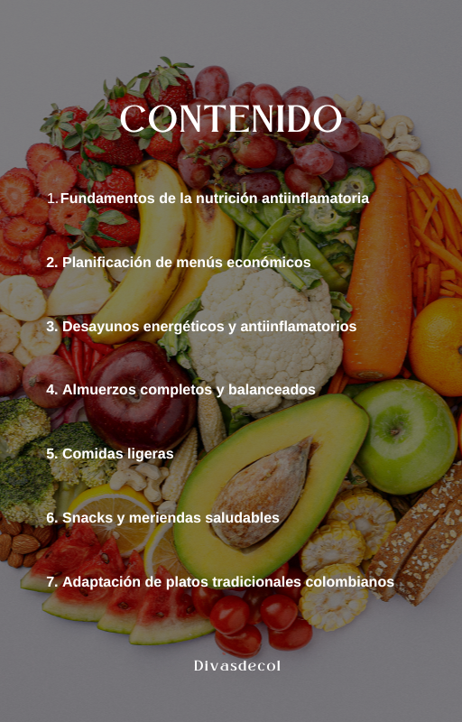 Este ebook es una guía práctica con recetas y consejos reales para llevar una alimentación saludable, económica y antiinflamatoria, adaptada al día a día colombiano.